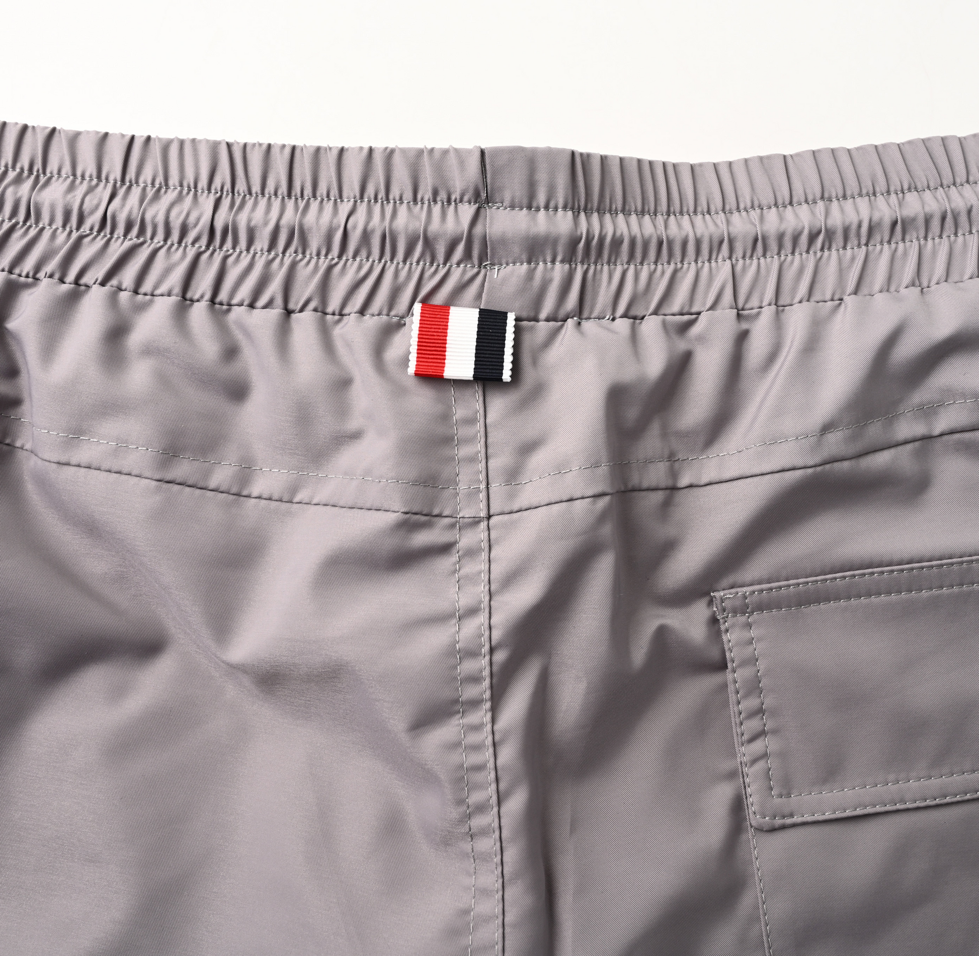 Signature striped grosgrain loop at back of neck