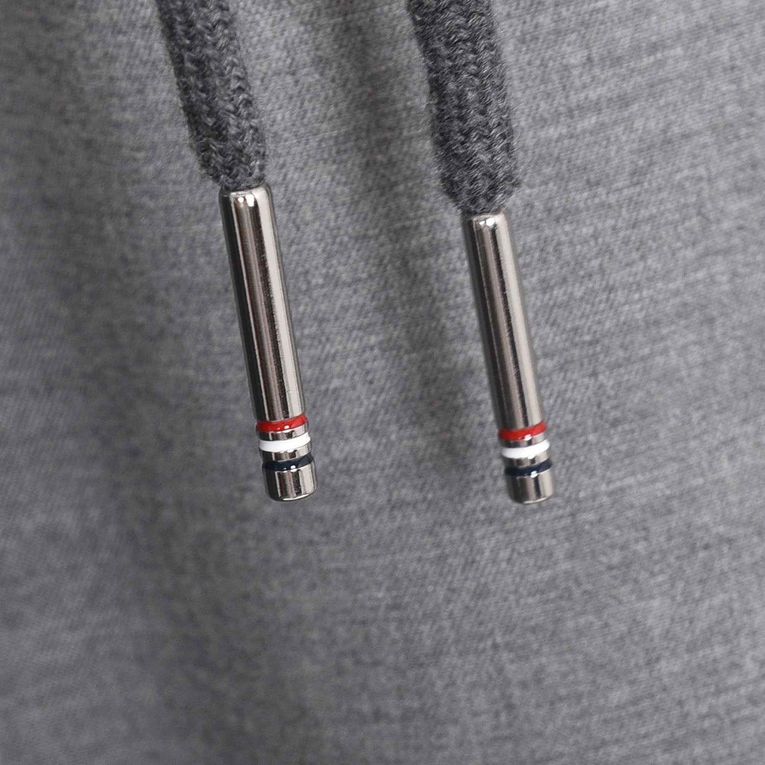 Drawstring hood with silver tone aglets