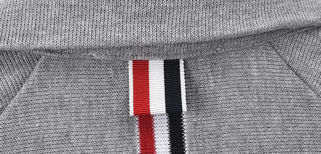 Button closure at front. Signature striped grosgrain button at back of neck.